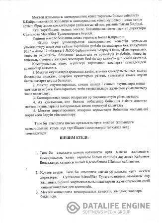 Қ.Сәтпаев атындағы орта мектептің қамқоршылық кеңес отырысының хаттамасы